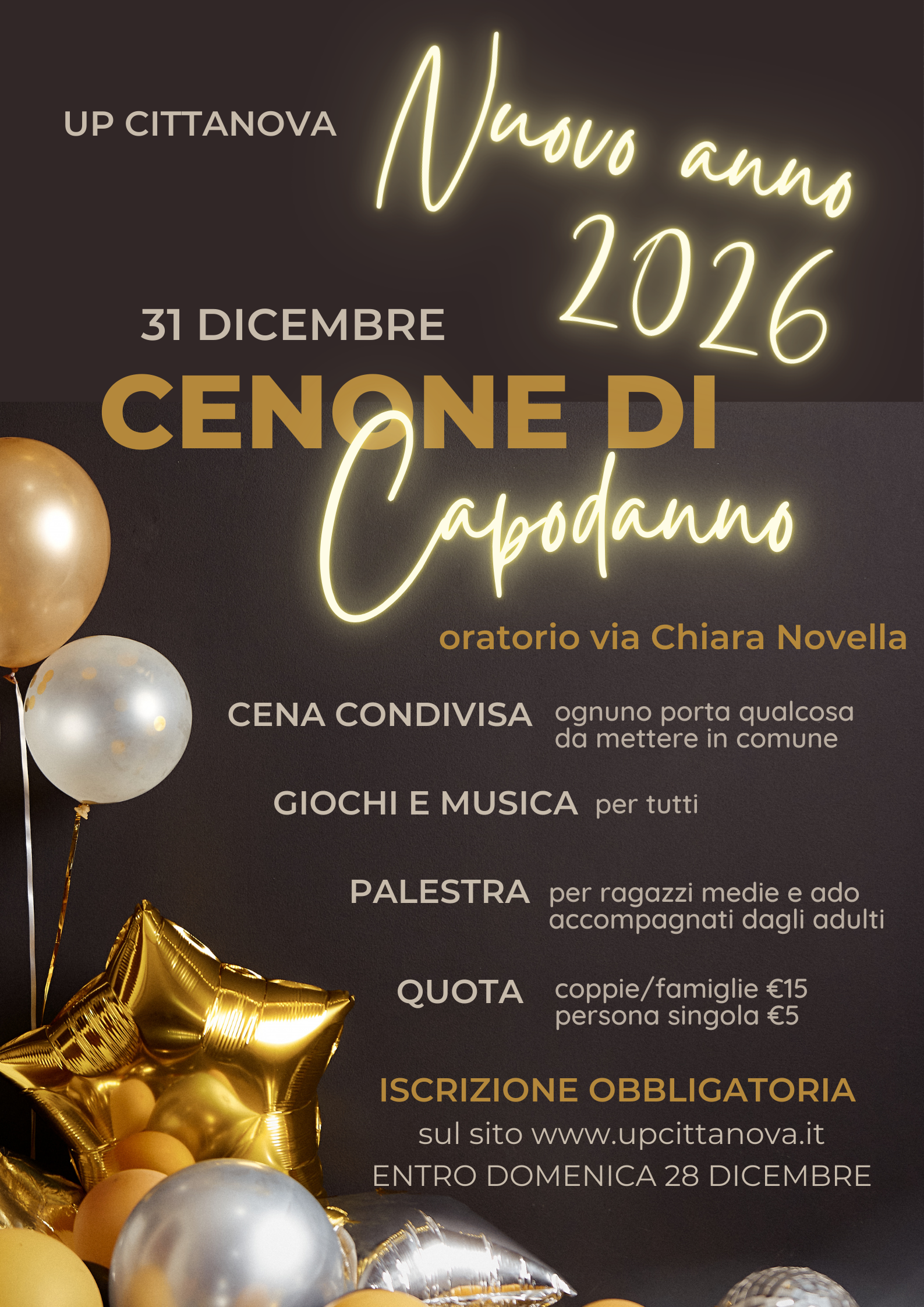 Il 31 dicembre dalle 20.00 in oratorio via Chiara Novella